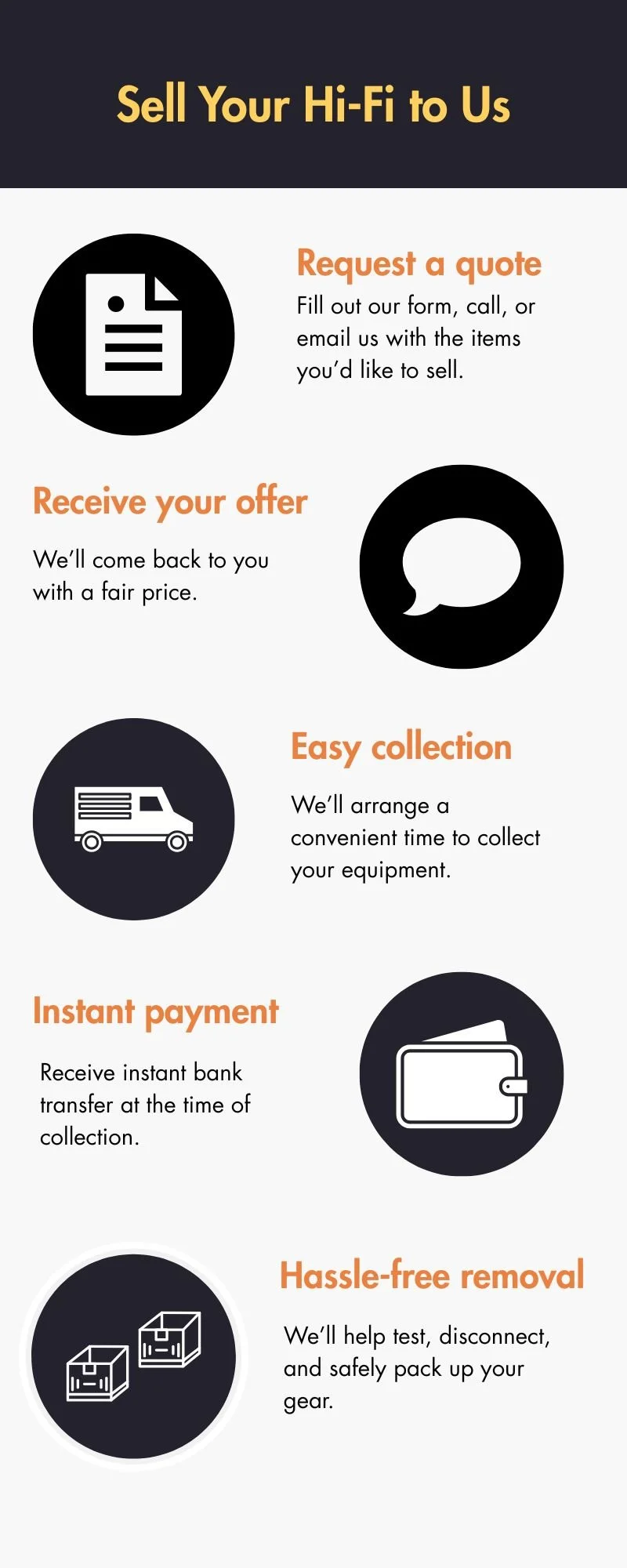 As one of the UK’s most respected second-hand hi-fi specialists, we are trusted by enthusiasts and collectors alike. Our reputation is built on offering competitive valuations, professional service, and a selling experience that reflects the calibre of the equipment we handle.